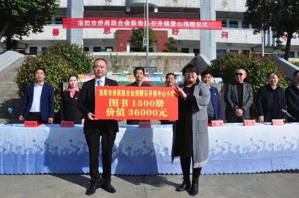 10月30日,由洛阳市侨联、市侨商会主办,新安县石井镇政府协办的“爱心传递 书香校园”图书捐赠仪式在新安县石井镇中心小学隆重举行。市侨联、市侨商会为新安县石井镇中心小学“侨·爱心书屋”捐赠图书1500册,价值3.6万元。