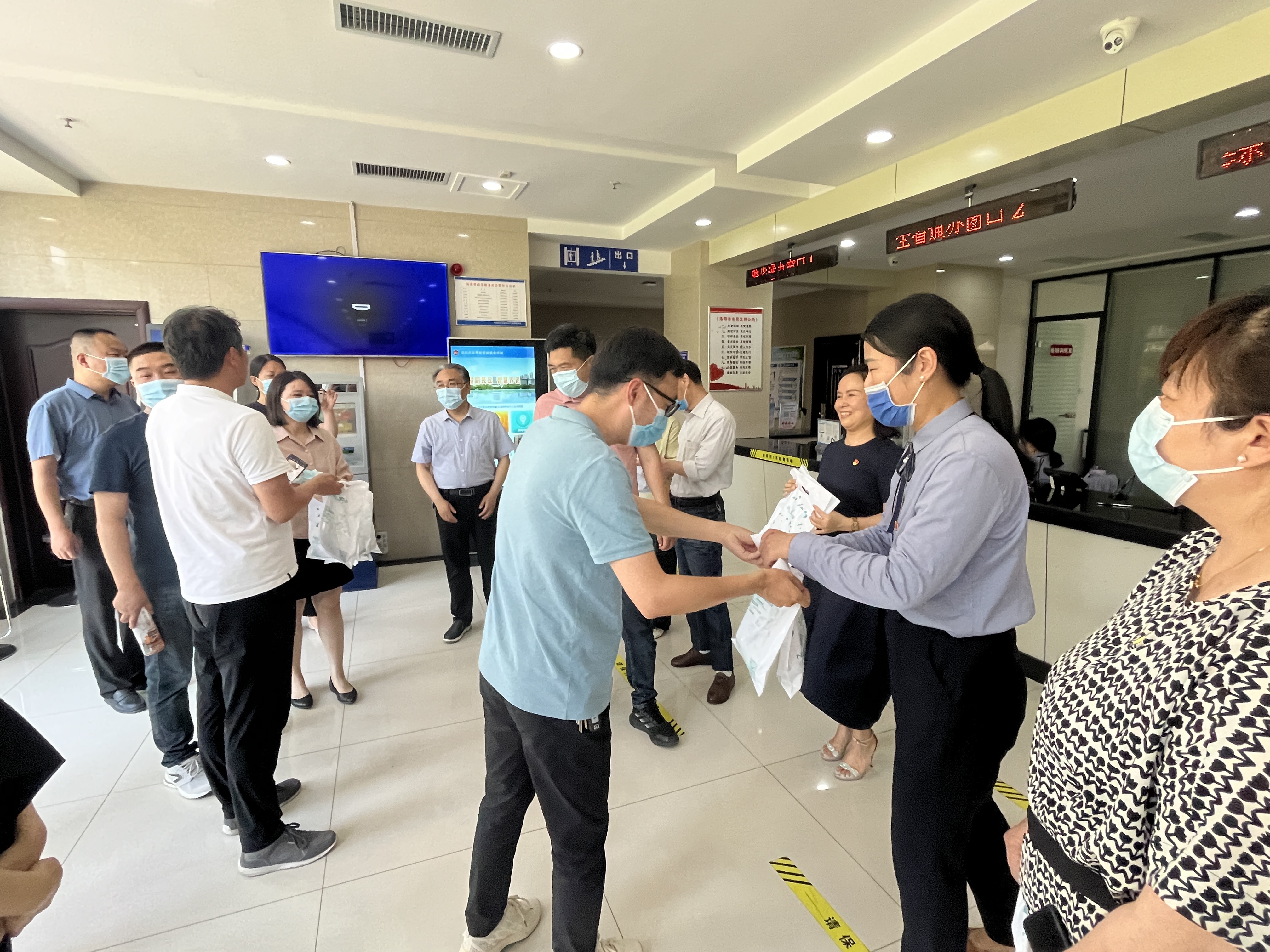 韩向阳一行首先来到老城区行政服务中心,为中心服务窗口各单位送上30副老花镜,方便办事的老年群众填写表格。随后,来到老城区城管违停大队和老城交警队岗亭,为现场执勤的交警和城管队员送去太阳镜、西瓜、矿泉水、降暑防疫等物资。韩向阳对一线同志们顶着炎炎烈日坚守工作岗位的敬业精神表示肯定,叮嘱他们要加强自我防护,防止被紫外线灼伤,同时注意做好防暑降温,为城市提质工作做出积极贡献。