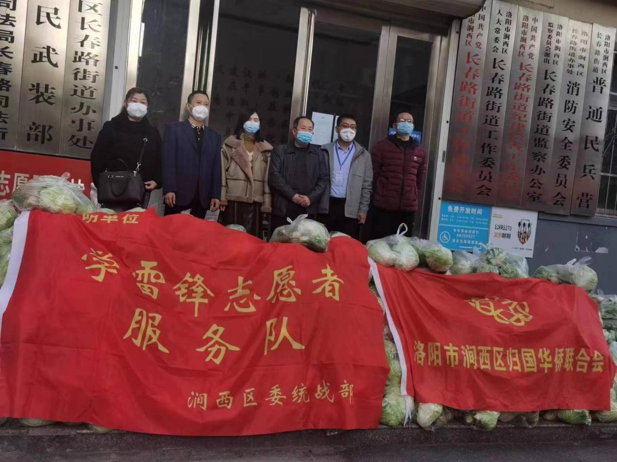 11月19日下午,涧西区侨联组织爱心侨企臻如物业,到疫情防控一线的珠江路街道办事处、长春路街道办事处、郑州路街道办事处走访慰问,送去蔬菜包900份,约18000斤。区委统战部常务副部长谢鸿涛、区侨联主席李俊红参加捐赠活动。