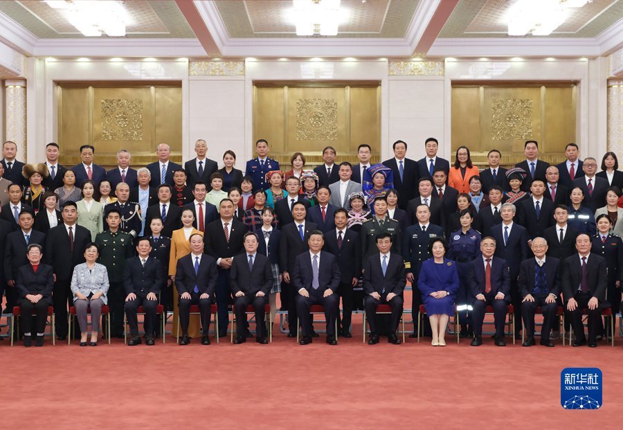 11月5日,党和国家领导人习近平、王沪宁等在北京人民大会堂会见第八届全国道德模范及提名奖获得者。新华社记者 申宏