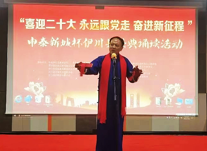 7月30日下午,由伊川县委统战部、伊川县侨联作为指导单位举办的“喜迎二十大、永远跟党走、奋进新征程”申泰新城杯伊川县经典诵读展演活动在申泰新城电影馆圆满举办。展演由伊川县新的社会阶层人士联谊会、伊川县群众文艺工作者协会共同主办,伊川县群艺协诵读委员会承办。