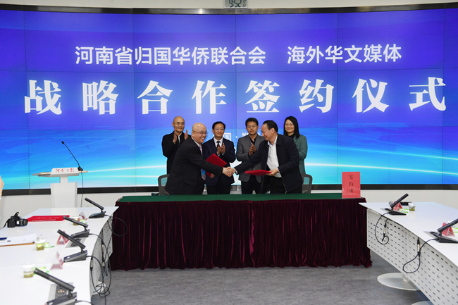 签约仪式上,刘合生、张学文分别代表省侨联、河南日报社与16家海外华文媒体签署了战略合作协议,省侨联为16家海外华文媒体代表颁发“河南推荐官”证书,杨海强、孙德中分别致辞。协议约定,将紧密结合各自平台优势和内容优势,建立长期而稳固的合作关系,用海外视角、国际化叙事,携手讲好新时代河南故事、黄河故事,推动中原文化出圈出彩出海。